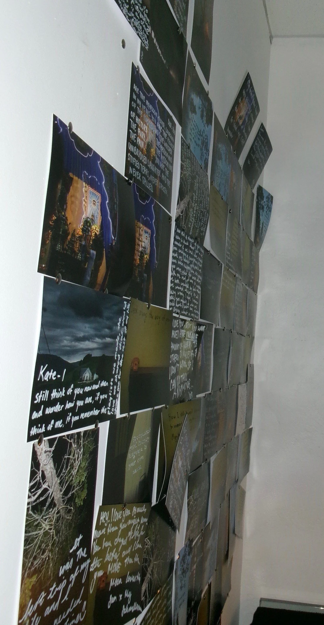 The wall of Confessional (2025), covered in confessions.