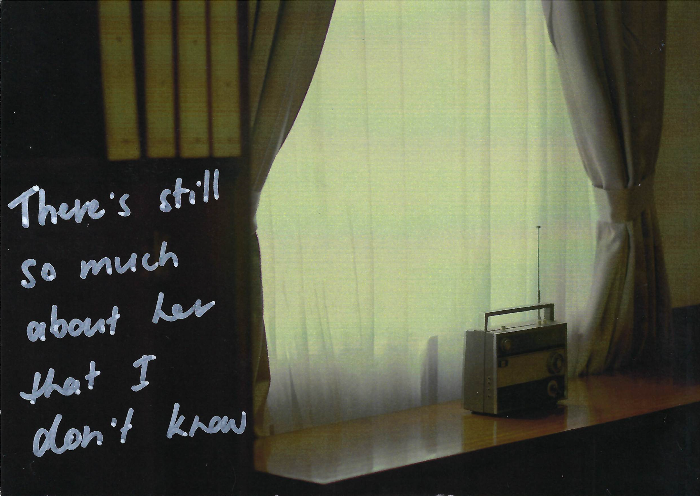sometimes when I'm back at your house I think I can still hear the muffle of the radio through your door, but when I enter, you're not asleep on the bed, and the station you play isn't running anymore. but I know where to listen